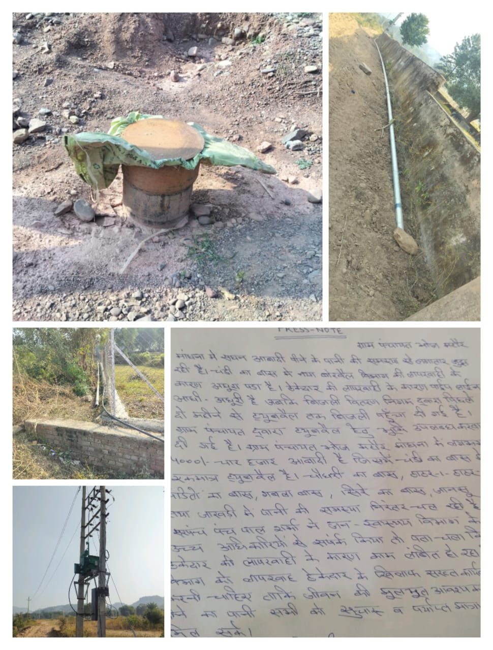 ग्राम पंचायत प्रतिनिधि—पंच हरीश और सरपंच पंच पाल शर्मा—ने बताया कि चंडी का बास में नया बोरवेल तैयार किया जाना था। बिजली कनेक्शन समय पर होने के बावजूद जल विभाग और ठेकेदार ने पाइपलाइन का कार्य अधूरा छोड़ दिया। ग्रामीणों का आरोप है कि दो महीनों से विभाग को कई बार अवगत करवाया गया, लेकिन समस्या जस की तस बनी हुई है।